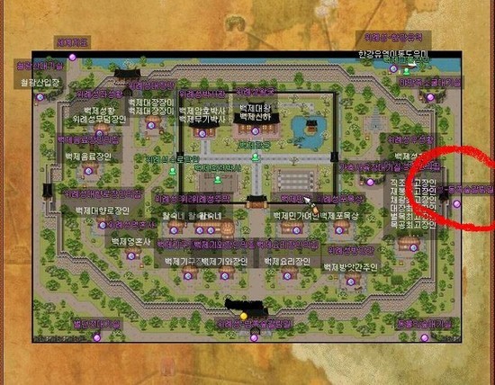백제는 국내성,부여성 북쪽 쭉 위로 가셔서 지도이동에서 산적굴 밑쪽에 새로 생겼습니다. ^^