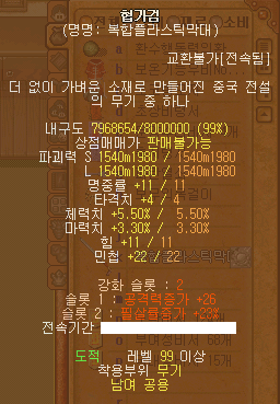 ○바람의나라 중국전설의무기 협가검 분석○