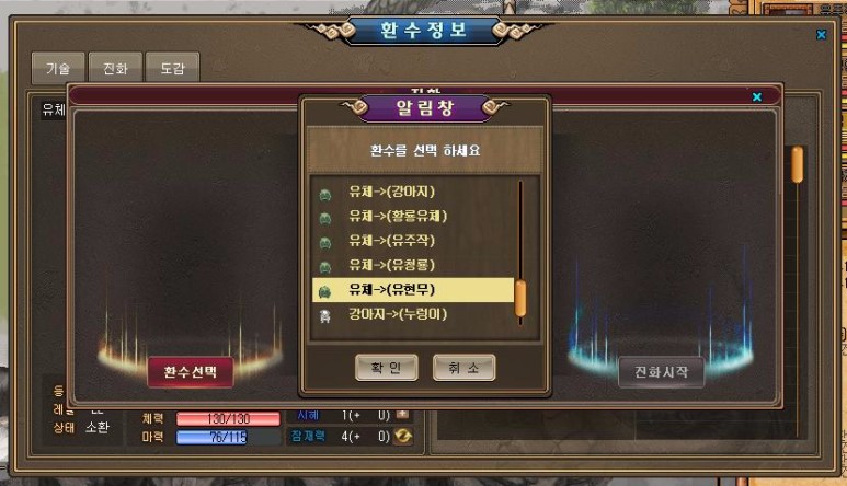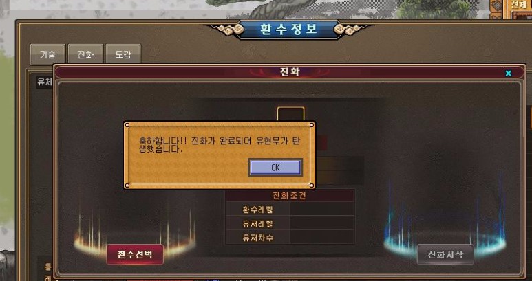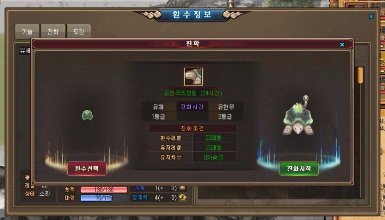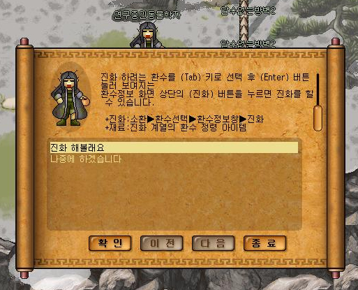 진화방법 안내문구가 뜬다.