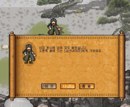 도호귀인에게 경험치를 판 이후, 다음 관문으로 이동. 이번에는 동물학자가 보인다.