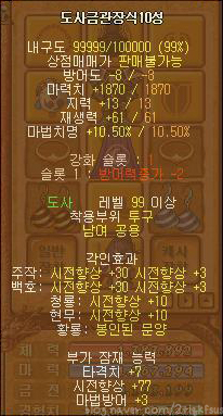 [상급]영웅투구는 얼마전에 영웅던전 추가되면서 나온 아이템인데 저렴한 반면, 황투 뺨때릴 옵션인 방어도 -11에 마수(마법수준향상) 5까지 기본 옵션이에요.