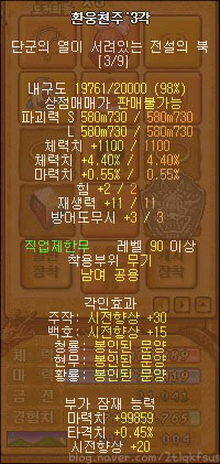 귀문진산장'태는 양손무기라고 합니다!ㅠㅠ 하지만 마뻥도 좋고 기원 사용시 확률적으로 그룹원 모두의 체를 올려주는 귀문격이 터져요. (귀문류의 최종판 귀문진혼장도 양손무기)