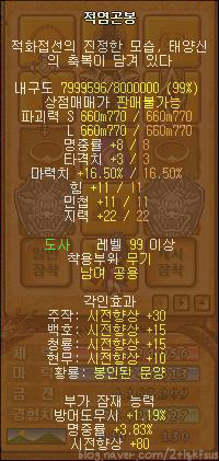 대모홍접선'혈에는 방어도-2와 시향5%가 기본옵션이고, 진'적염곤봉은 일본전설무기 최종판인데 연서버에서는 한 번도 보지 못 했어요.
