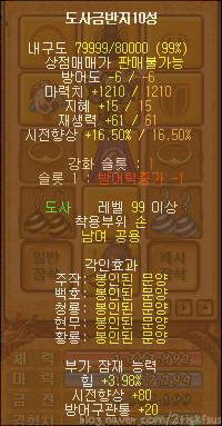 백만위령선은 교환불가 아이템이구요. 무기의 기본 옵션에 시전향상 11%가 포함되어 있어요.