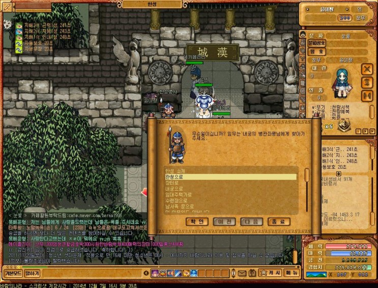 (3) : 한성북쪽에 있는 경비병을 눌러서 "한성관청"으로 가도록 하자