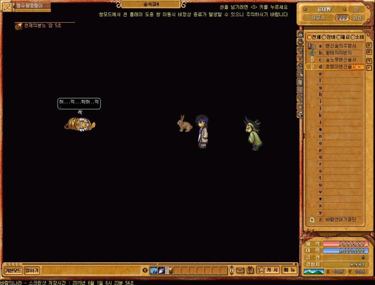 <<<<<<맵으로 가서 호랭이를 패러 가도록 하자