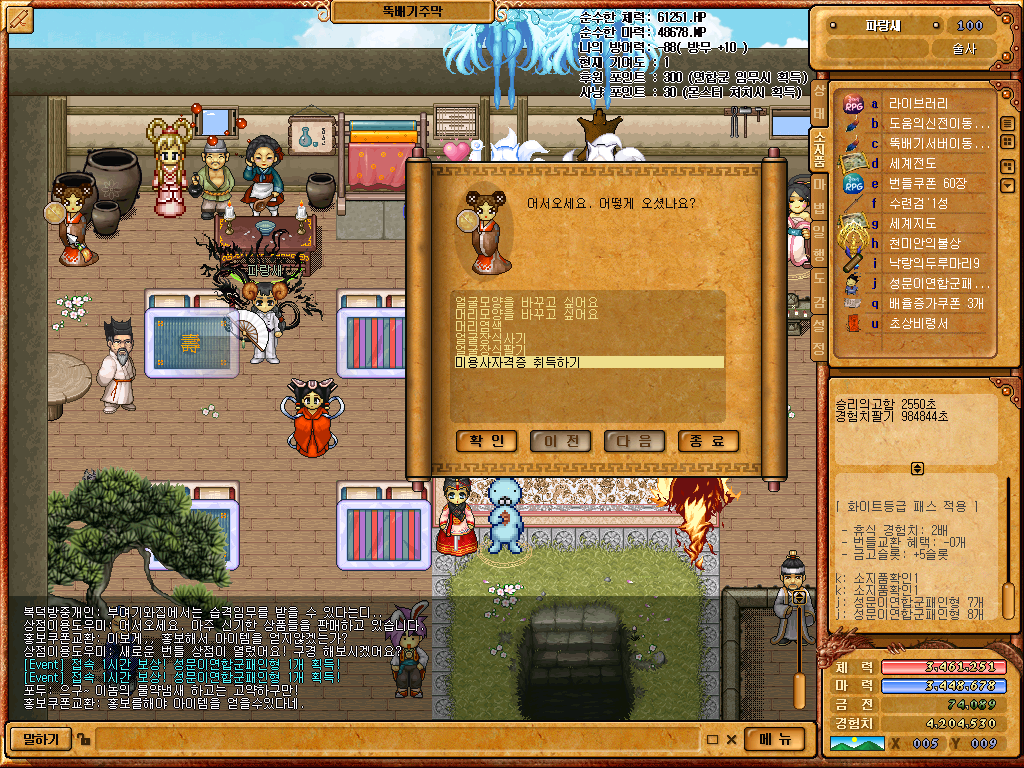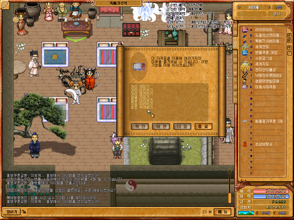 주막 좌표 1, 7로 가면은 성형, 미용 NPC가 있어요~~~할때마다 엔피씨를 눌르고 미리볼수가 없지만 실시간으로