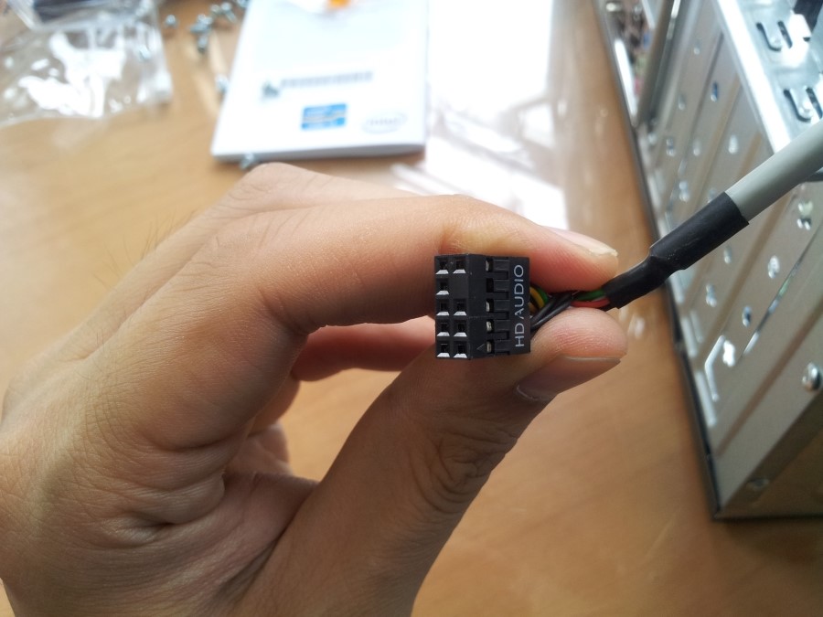 HD AUDIO 케이블은 아래쪽을 보면 중간에 막혀있는 부분이
