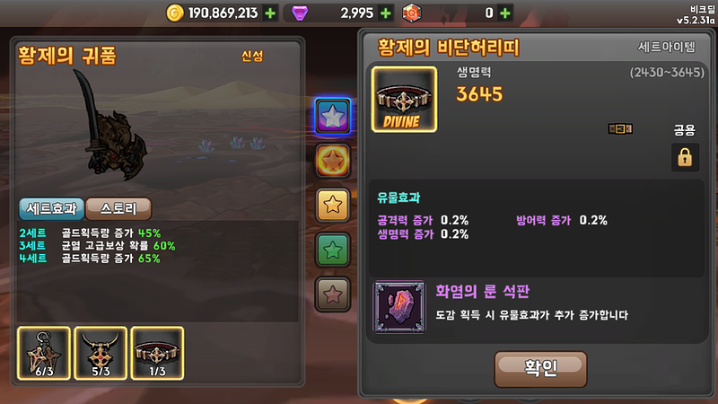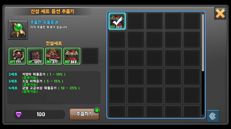 황제의 귀품 : 추출(균열, 골드)과 모험, 균열 방치 착용