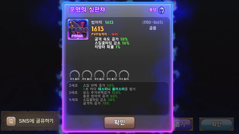 무기 방패 이외의 세트 옵션을 받지 못하는 불멸은 장착하시면 손해입니다.