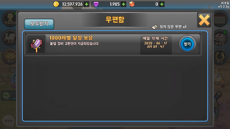 균열을 돌리다 보면 1000레벨을 달성하고 상점 교환탭에서 획득권 교환합니다.
