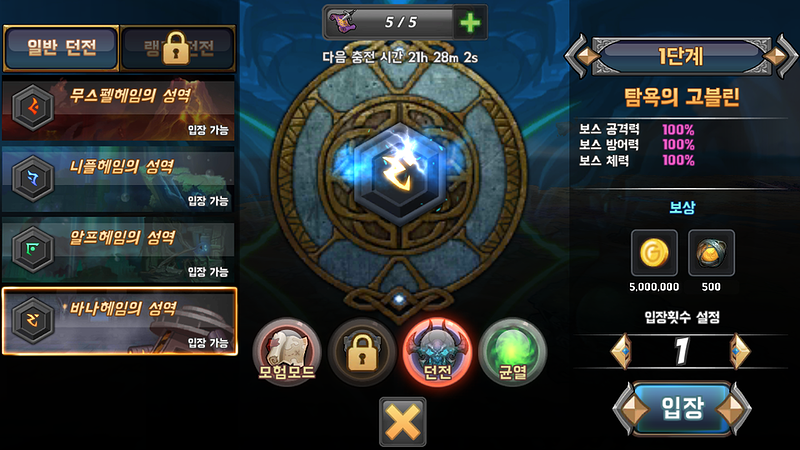 5000레벨 이후 -> 평일 2일 : 정제석 / 평일3일 : 골드 / 주말 : 경험치