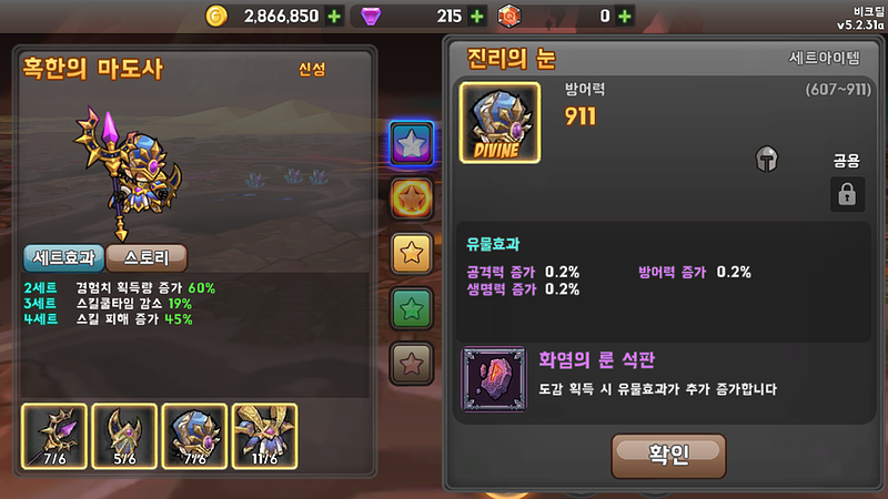 혹한의 마도사 : 추출(경험치)과 모험 방치 착용