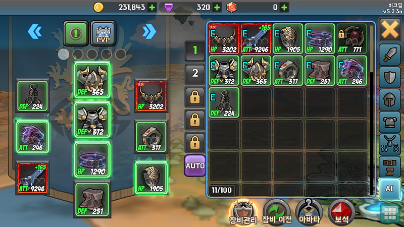 전 한대씩 픽픽 맞고 죽어서 방패 투구 상의를 강화해줬습니다.