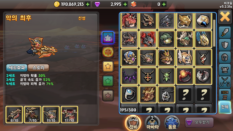 아바타는 일단 장착만 하고 마법부여는 나중에 합니다.