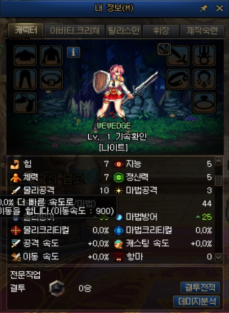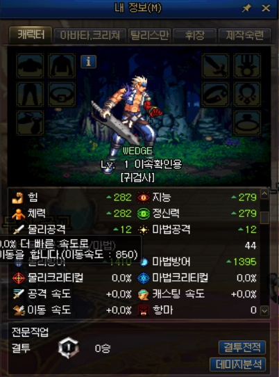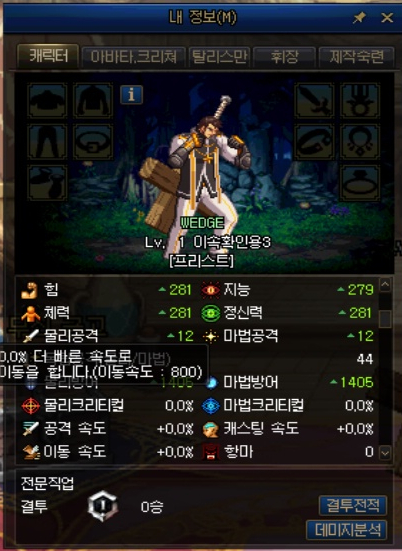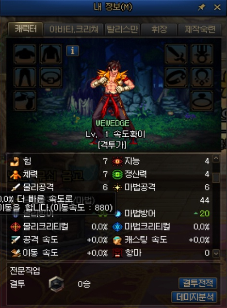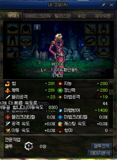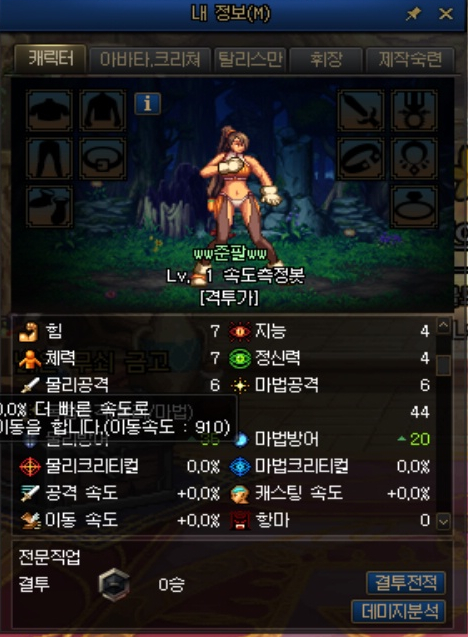 그러면 전직 전 기본 직업의 이동속도를 알아보겠습니다.