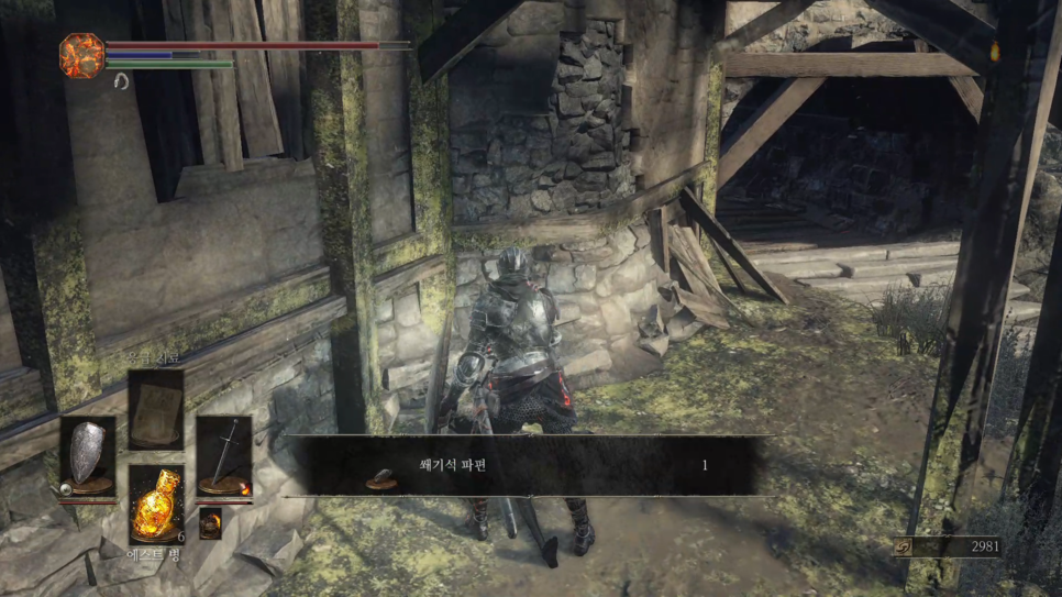 2번 몹을 처리한곳 옆에 "쇄기석 파편" 획득