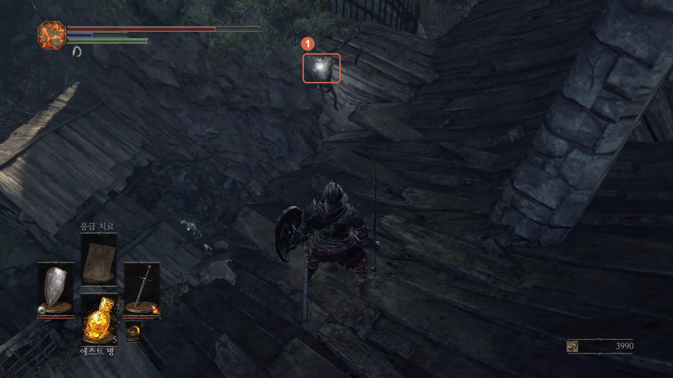 앞으로 전진하며 1~3번까치 처리하고 4번 "사라질 것 같은 소울"을 챙깁시다.
