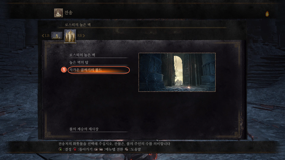 "대사제 엠마"에게 얻은 깃발을 올리면 불사자의 거리로 이동됩니다.