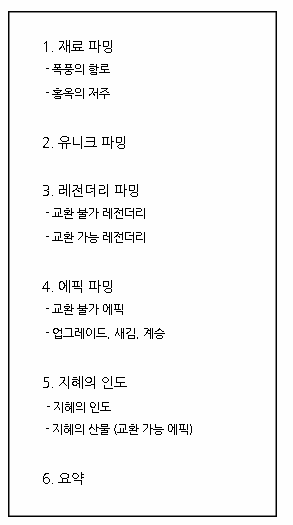 이번 글에서는 내가 착용하고 있던 장비의 운명과 새로운 장비는 어떻게 얻을 수 있는지, 내 캐릭터는 어디서부터 파밍을 시작하면 되는지. 장비 파밍에 대해 정리해보겠습니다.