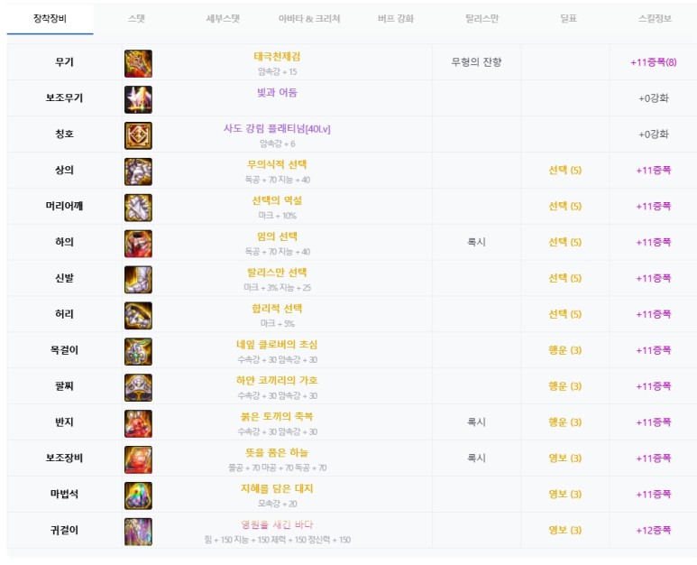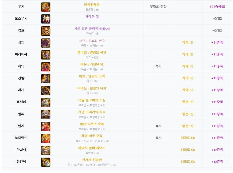 진 : 카오스 딜러 랭킹 2위인 분의 템 세팅은 위와 같습니다.