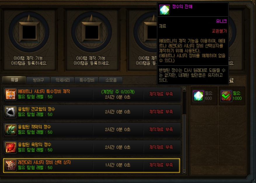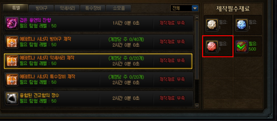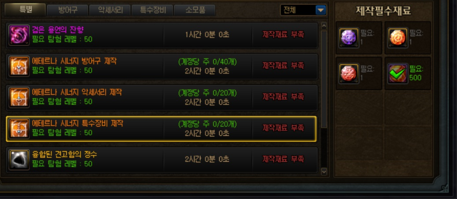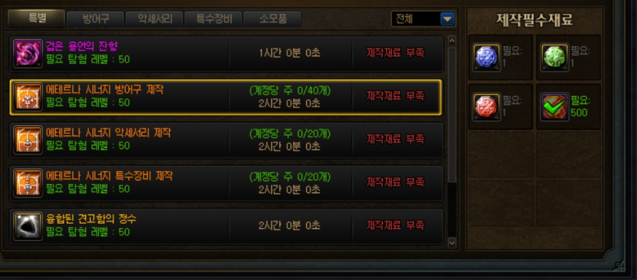 또한 50레벨 전 까지는 수호신의금화 (에테르나 재화)가 매우 부족한데