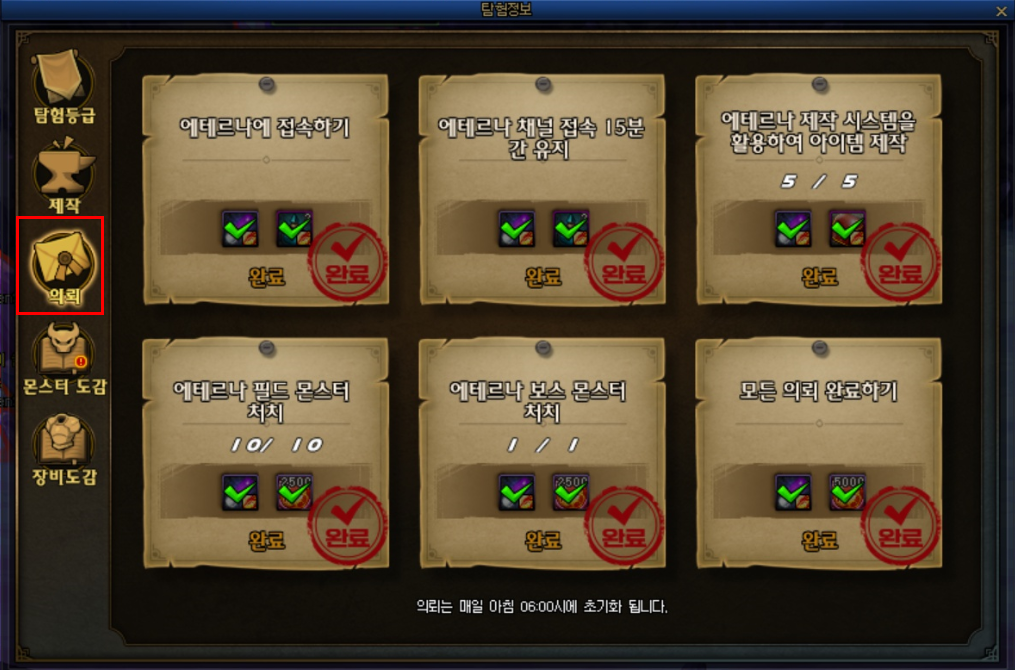 50레벨을 달성하면 의뢰부분에 일일퀘스트가 생겨서