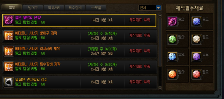 하드 흑금룡 겔드라허의 잔해물이 각 1개씩 필요함