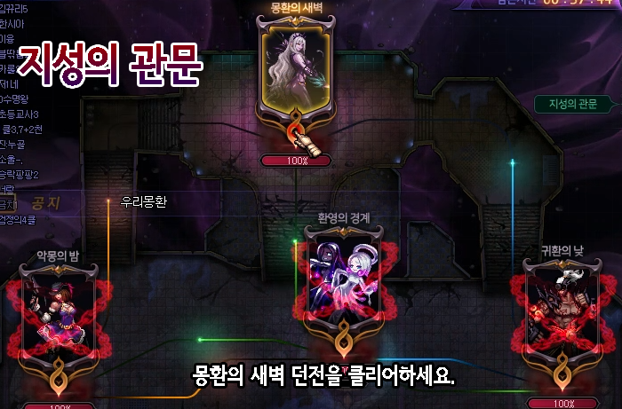 몽환의 새벽 던전을 클리어하면 지성의 관문을 통과할 수 있습니다.