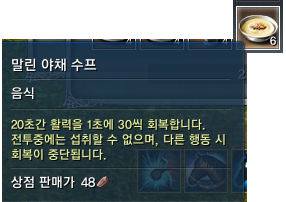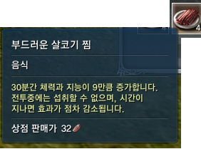 또한 음식 중에는 일정시간 버프를 주는 음식도 있습니다.