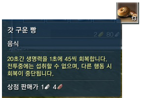 음식은 한번에 한가지만 섭취할 수 있습니다. 즉, 수프와 빵을 같이 먹을 수는 없습니다. 또한 당연히 전투중에는 먹을 수 없습니다.
