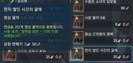 3단계 물약은 35실로 가격이 훌쩍 뛴다.(치유물약도 마찬가지)