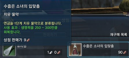 게다가 단지 치유물약, 명상물약, 재생물약으로 명명된 것이 아닌 수줍은 소녀의 입맞춤,