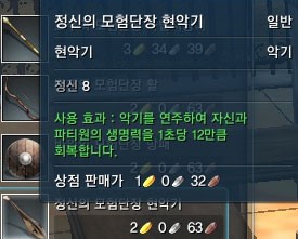 악기 연주는 전투중에도 사용할 수 있어 물약이 없을때에는 훌륭한 대안이 될 수 있습니다.