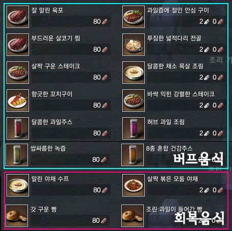 버프 음식들은 효과가 겹치는 것만 아니라면 골고루 효과를 볼 수 있습니다.