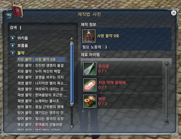 아키에이지에는 다양한 종류의 물약이 있습니다.
