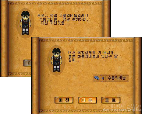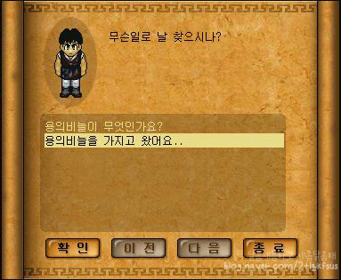 이건 수룡의비늘이 떴을 때 뜨는 대화창이구요