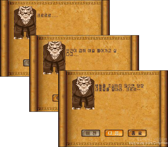 1번, 2번 방법을 사용하시면 용굴의수호자npc가 이렇게 말을 건 후에 수룡, 화룡의 방으로 들여보내줍니다.