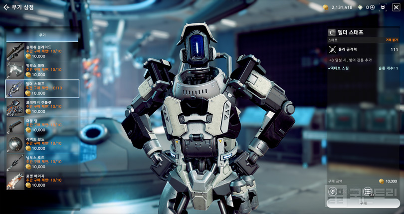 ▲ 가디언 타워에서 구매할 수 있는 무기와 관련 수집 (사진: 국민트리 촬영)
