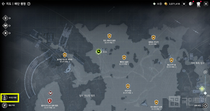 ▲ 지도에서 ‘가디언 타워’를 눌러 이동후 힐링 캡슐 구입 (사진: 국민트리 촬영)메인 퀘스트 1막을 진행하다 보면 체력을 채워주는 ‘오퍼레이터 힐링 캡슐’이 부족한 경우가 있다. 이때 일부 유저는 해당 아이템을 구매하기 위해 맵을 살펴보는데, 어디서 구매해야 하는지 몰라 헤매기도 한다. 힐링 캡슐은 ‘가디언 타워’에서 판매한다. 이곳은 지도 화면 좌측 하단 아이콘을 눌러 이동할 수 있다.