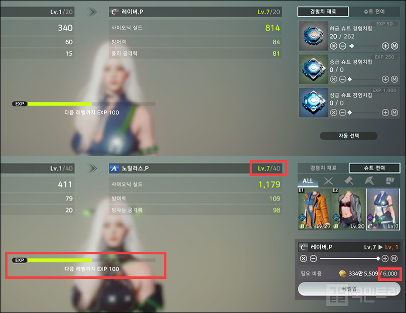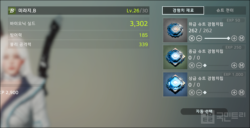 ▲ C등급 슈트에 들어간 경험치를 A등급 슈트로 고스란히 (사진: 국민트리 촬영)