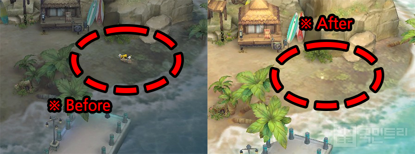 ▲ 볼트가 땅을 판 곳을 다음날 방문하면 유실물이 나타난다 (사진: 국민트리 촬영)지난 1차 여름 이벤트에서도 매일 유실물이 추가됐었다. 이번에도 맵 곳곳에 반짝이는 유실물이 나오며, 이를 통해 쥬얼과 이벤트 재화, BGM을 얻을 수 있다. 유실물은 맵 곳곳에 숨겨져 있기 때문에 커뮤니티에 올라오는 정리글이 인기다.