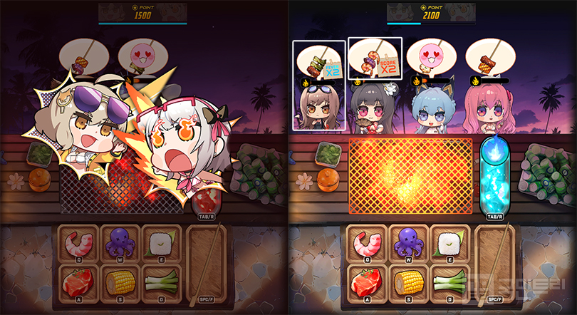 마지막으로 이번 이벤트의 꽃이라 할 수 있는 전용 미니게임 BBQ 마스터다. 과거 플래시 게임을 연상케 하는 바비큐 굽기 미니게임으로 120초간 방문하는 니케들의 주문에 맞춰 바비큐를 제공하면 된다. 적당한 굽기로 제공해야만 점수를 얻을 수 있고, 바비큐 하나당 300점을 획득한다.