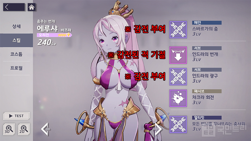 ▲ 클라우디아를 제외한 유일한 감전 부여 스킬을 가진 에루샤 (사진: 국민트리 촬영)