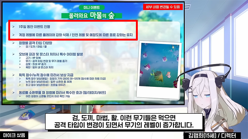 굳이 선물을 주는 건 장기적인 안목을 위해서다. 지난 3월 스토리 이벤트에서 선보인 미니 게임을 기억하는가? 2분기 로드맵에서 밝히길 이를 재정비해 6월에 다시 선보일 예정이다. 인연 레벨 관련 룰은 그대로 유지한다. 인연 레벨과 애정도에 따라 동료 정령의 스펙이 오른다. 참고로 행사는 일주일간 진행할 예정인데, 아마도 한 번만 하고 끝날 것 같진 않다. 주기적으로 개최할 가능성도 엿보인다.