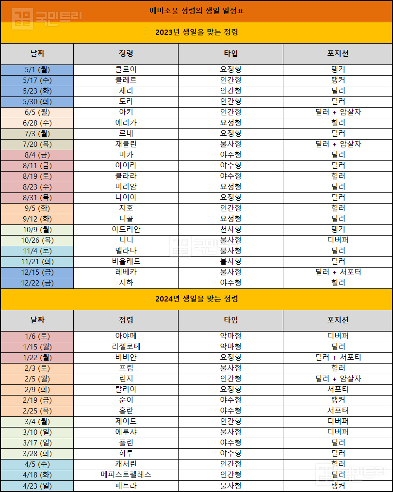 2023년 생일인 정령은 누가 남았지?