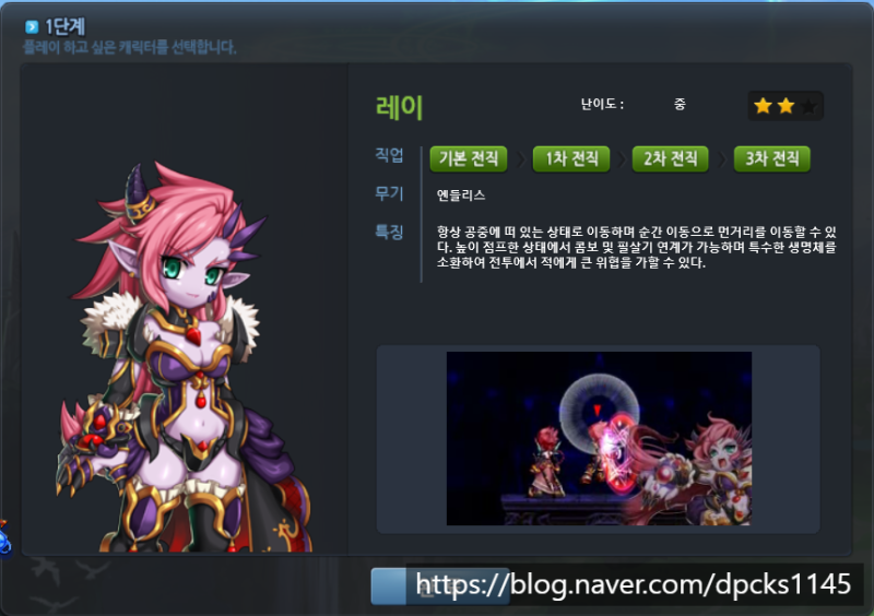 특징 : 쉬운 커맨드와 스킬트리, 던전과 PVP 모두 성능이 준수한 편, 쉽게 접근 가능함.
