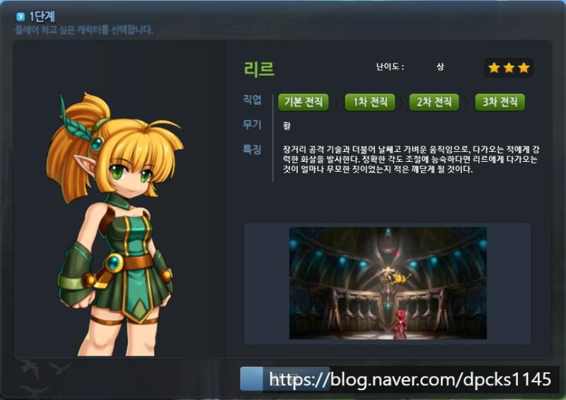 리르는 활을 주 무기로 사용하는 원거리 캐릭터입니다. 지금도 마찬가지지만, 지금도 그리 큰 사랑을 받는 캐릭터는 아닙니다. 던전에서의 성능이 아쉬운 편인데요. 그랜드체이스의 주 컨텐츠가 던전이라는 것을 생각해 보면, 이는 엄청난 단점이라 할 수 있겠습니다.