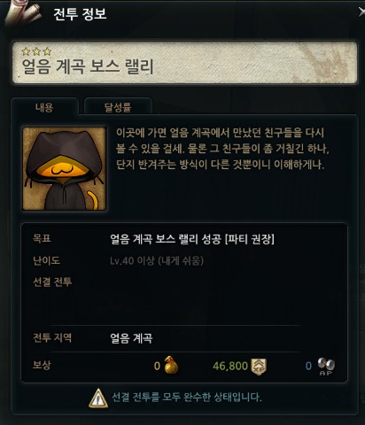 얼음계곡 : 1.2만골드, 3만골드, 9.5만골드, AP800캡슐'거대북극곰의 주머니를 턴' 타이틀(민첩+3, 거래가능)