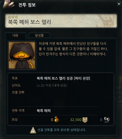 입장레벨 32, 추천레벨 50이상.